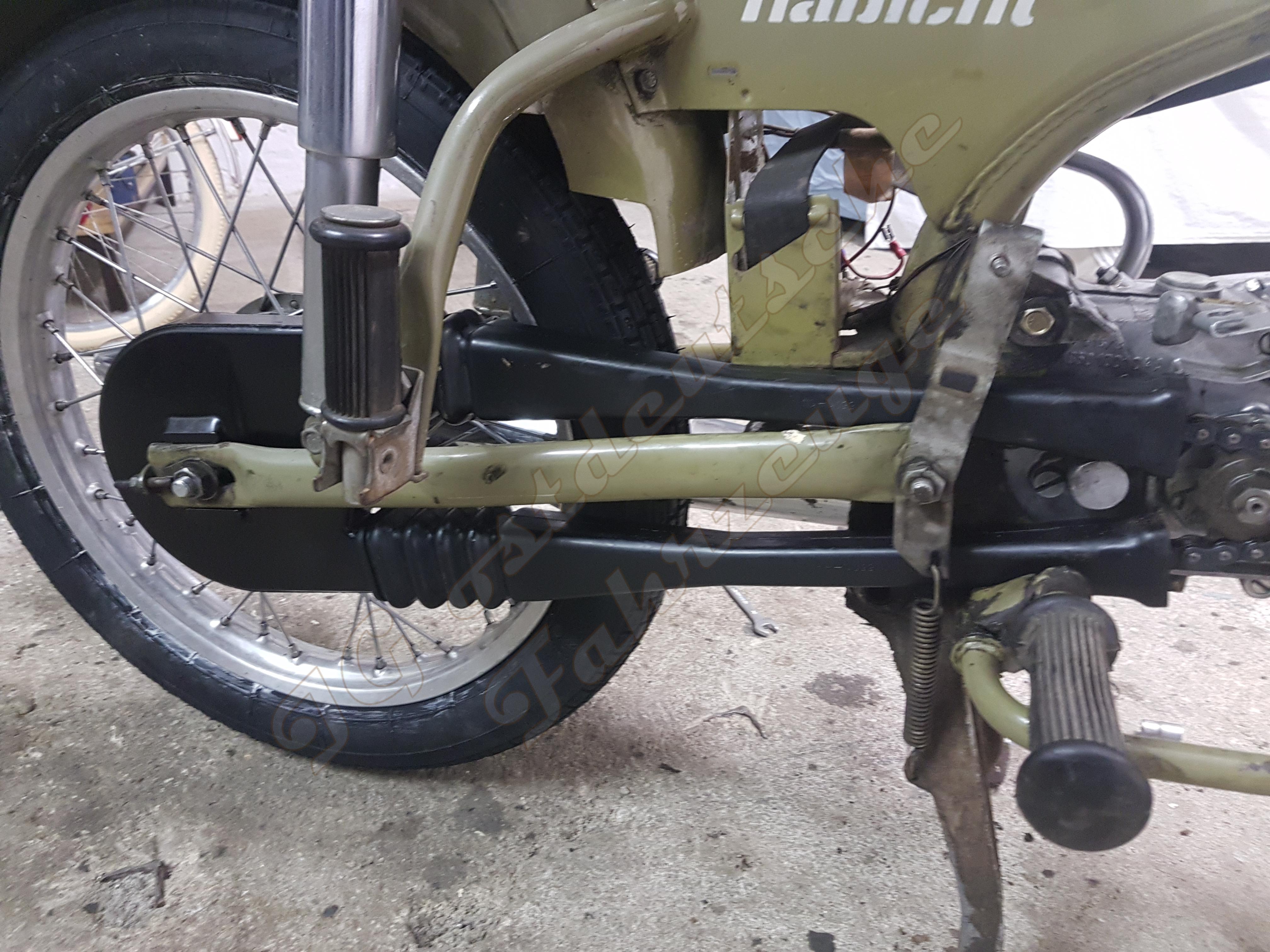 Ich habe heute mal wieder etwas gefummelt. Das Lenkerblech am Habicht hat mir nicht gefallen. Jetzt ist eines aus Aluminium verbaut. Weiss eigentlich jemand, ab wann es die Stahlbleche gab und ob Stahl generell keine Prägung für die Schwinge hatten, wie die aus Aluminium?