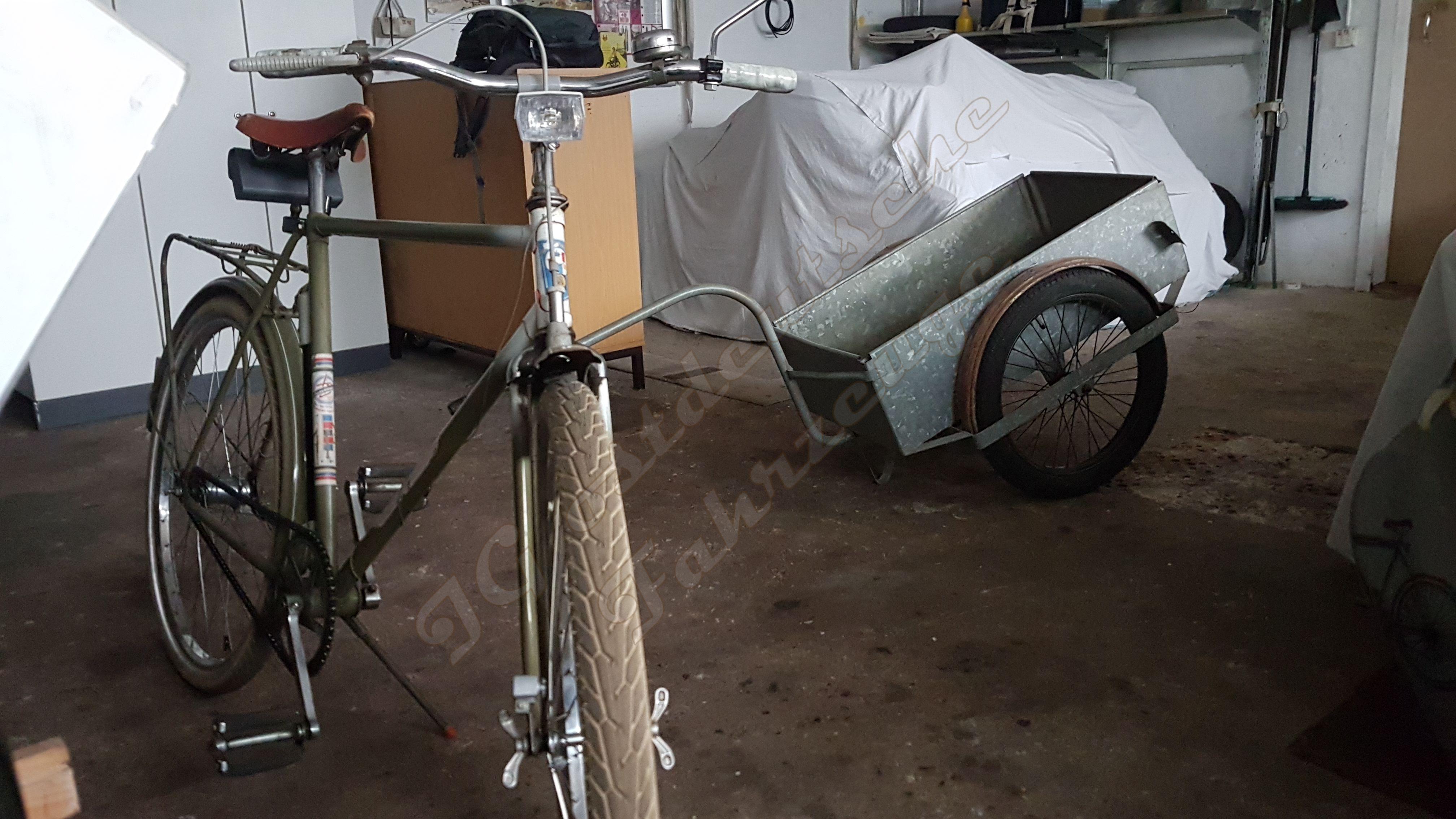 Von nun an ist mein Hauptdiamand ein Zugpferd. Die Umrüstung ist herausfordernd. Die Kupplung passt weder direkt am Rahmen, noch ausserhalb der Streben. Ich habe mich für die doppelte Flächenpressung und einen längeren (Eska-) Bolzen entschieden. Masse bekommt die Dose direkt über die Kupplung und der Dynamo wurde direkt angeklemmt. Ich habe ausgerechnet, dass eine zusätzliche Belastung von 0,6W dafür sorgt, dass alle 3 Lampen mit etwa 82% Leistung laufen müssten. Kennt jemand am Fahrrad eine Abschaltung des Rücklichtes am Zugfahrzeug, wie beim Moped?