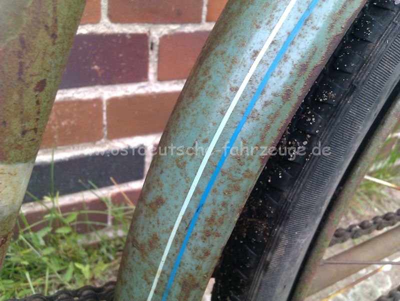 Bei dem Fahrrad hatte ich wohl ein bisschen Glück was den Erhaltungszustand angeht. Aus dem Lack lässt sich noch einiges rausholen. Habe mal an zwei Stellen das Rad mit einem in Fitwasser getränkten Lappen vorsichtig abgewischt und kann nur sagen, der Lack ist wirklich top.