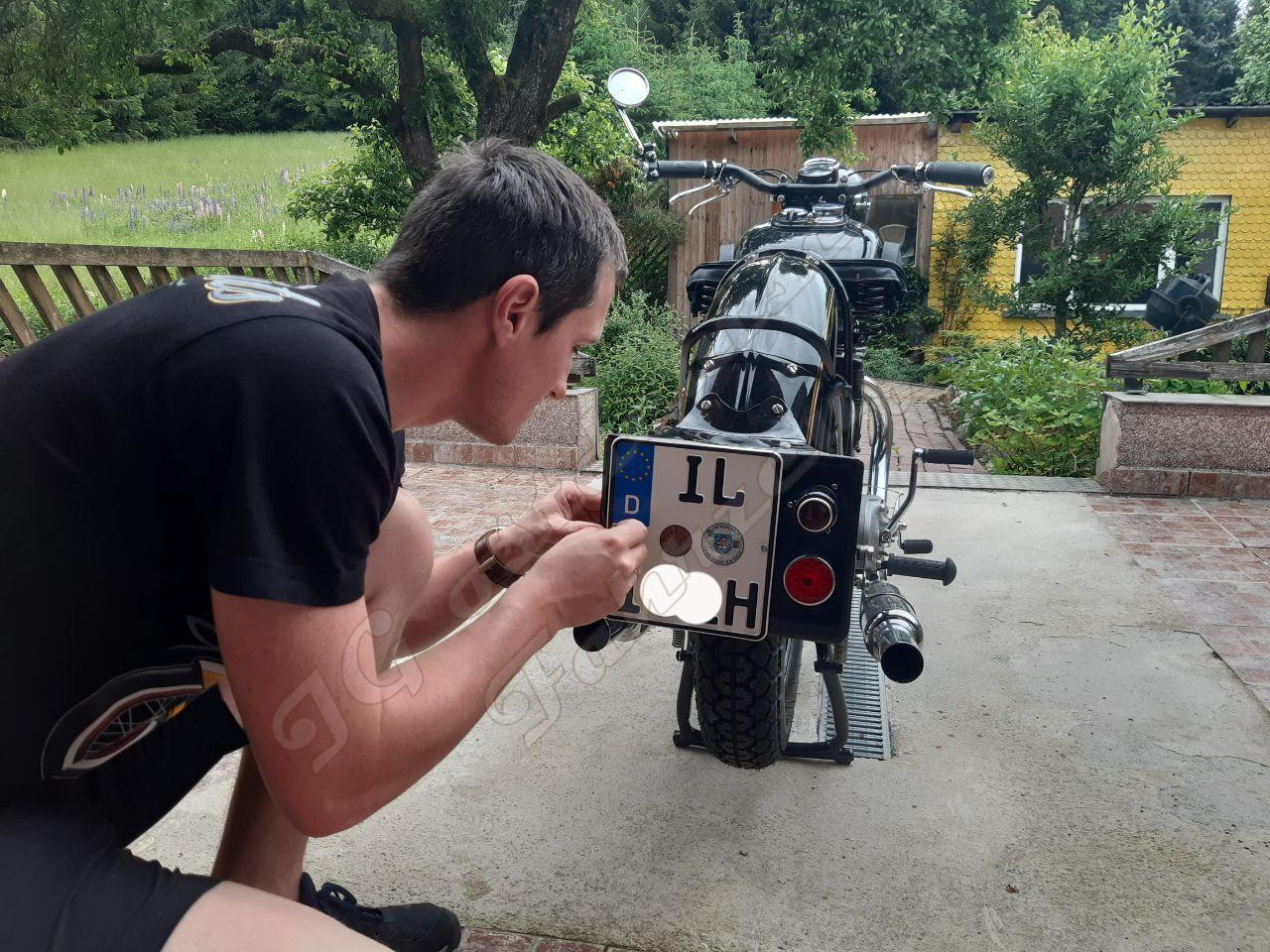 Die Zulassung dauerte, Covid19 geschuldet, länger als das Abnahmeprozedere. Ein geiler Moment, EU-Fahrzeugpapiere eines Motorrads zu erhalten, dessen Hersteller schon 82 Jahre nicht mehr existiert.