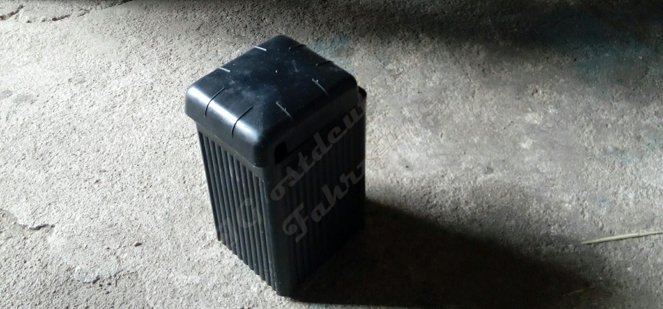 In die Box passt die normale 6V 4,5 Ah Gelbatterie, die auch in der Schwalbe gute Dienste leistet. Die Kapazität ist absolut ausreichend, wenn die Lichtmaschine ordentlich arbeitet. In die Box sollte aber eine Polsterung um Vibrationen vom Akku abzuhalten.