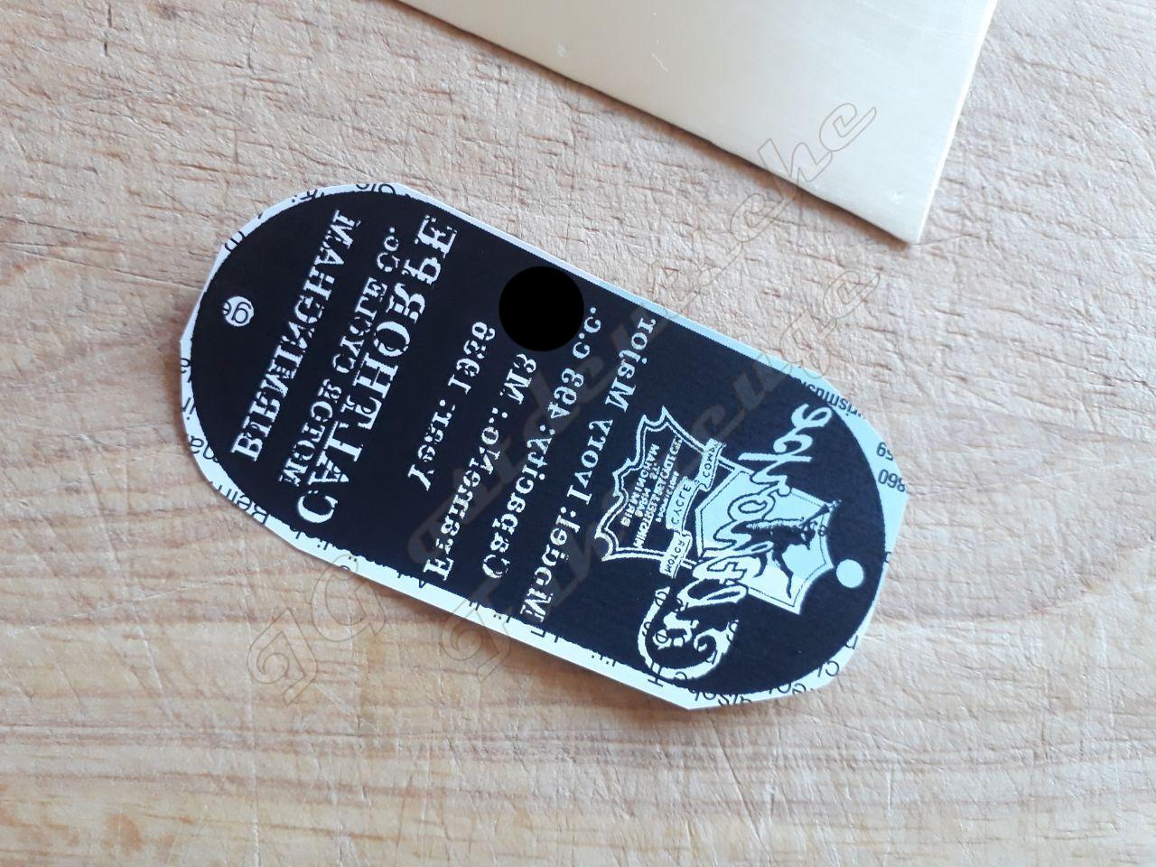 Das habe ich mir nun selbst gebaut und es machte viel Spaß! Im Photoshop eine Vorlage gebastelt...invertiert und gespiegelt... auf Otto-Katalog gedruckt (Laserdrucker)... mit Bügeleisen auf Messing übertragen, mit Eisen-III-Chlorid geätzt, lackiert und geschliffen. Voila!
