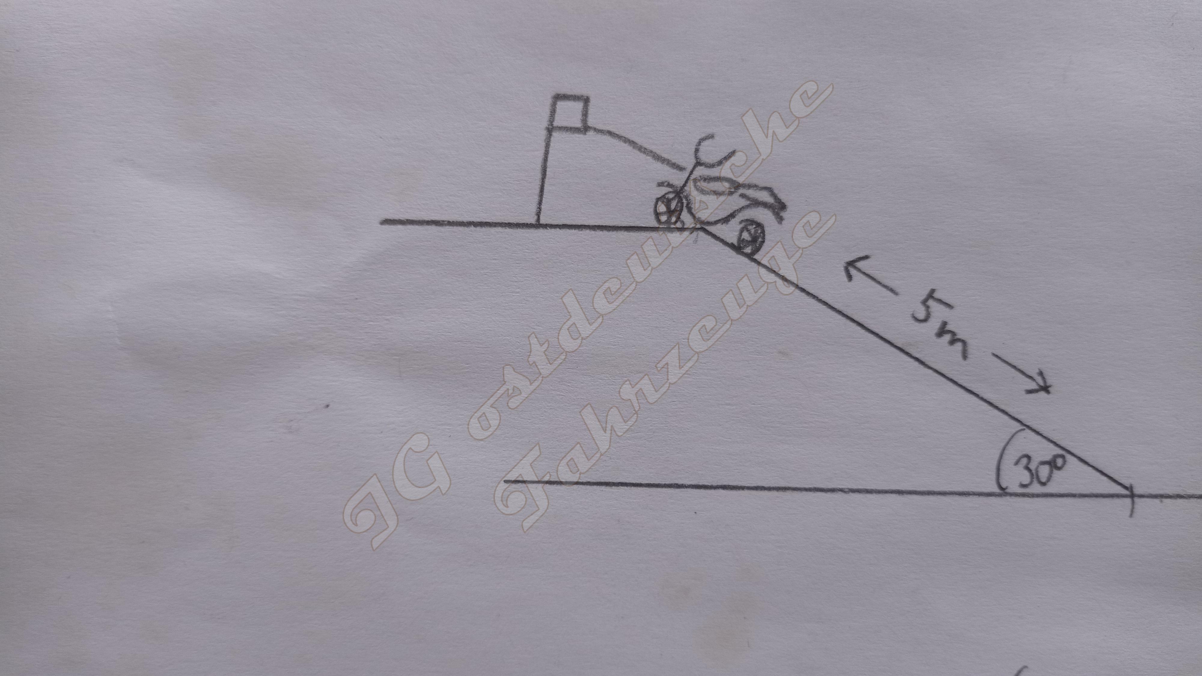 Meine Moepds werden aus dem Keller mittels einer Seilwinde über eine Rampe mnach oben gezogen. Die Rampe ist 5 m lang und steigt in einem Winkel von 30°. Am oberen Ende ist die Winde befestigt.