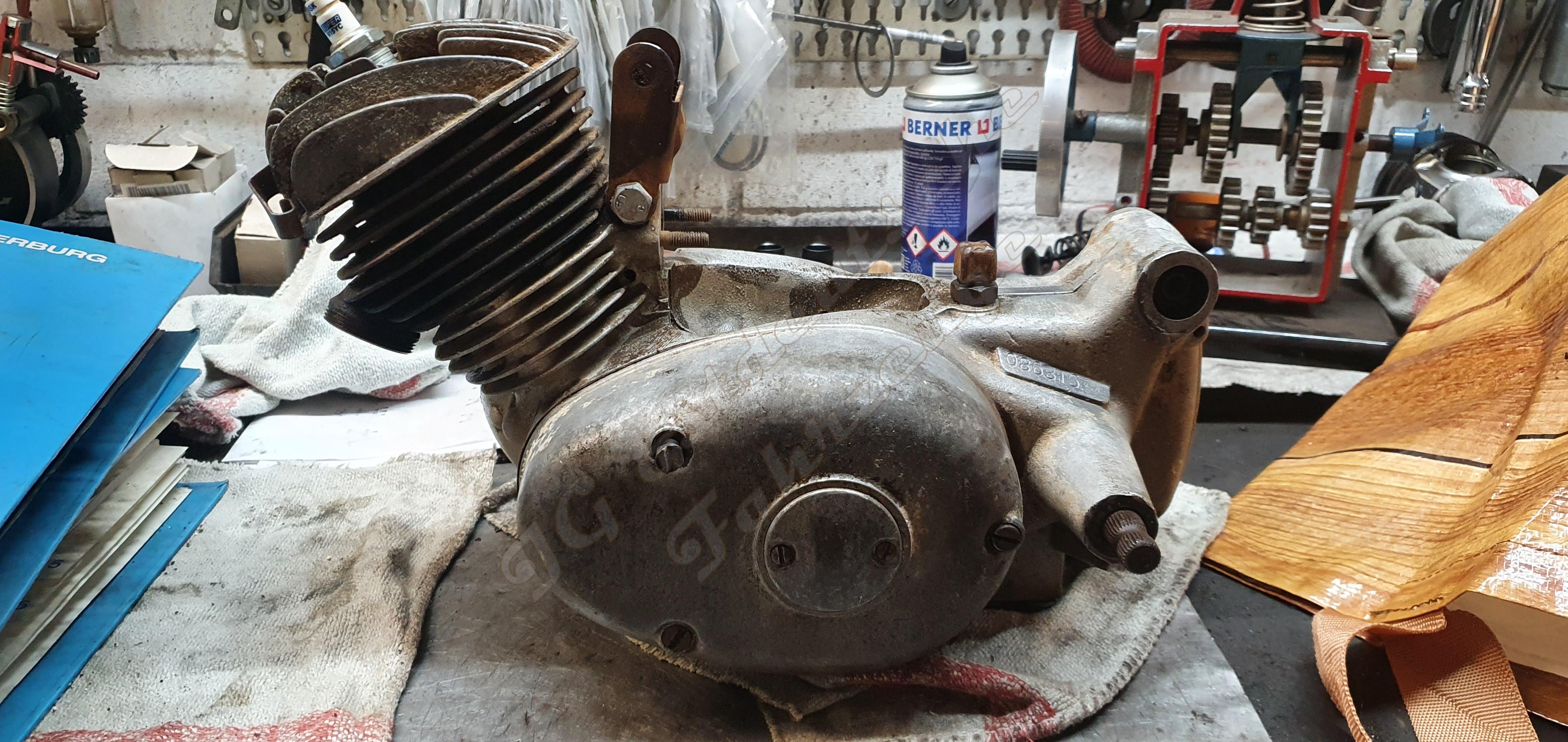 Jetzt steht sie in meiner Werkstatt auf der Bühne und wartet auf den Motorstart, den wir dann im neuen