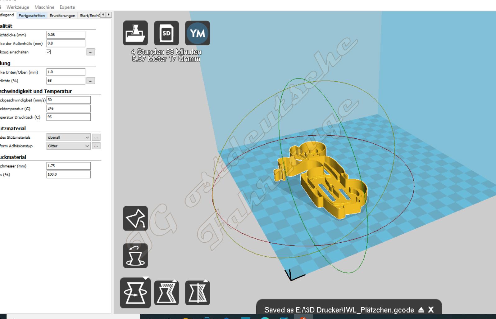 Daher verschiedene Konturen mit verschiedenen Tiefen. Ich habe mir das ganze im CAD nachgezeichnet und dann das ganze modelliert und das STL Modell mit dem 3 D Drucker zum Leben erweckt. Jetzt ist das erste Muster fertig. Quasi die BETA Version. Derweil läuft gerade im 3 D Drucker die Weiterenwicklung durch. Sobald die Teigprobe auch bestanden ist, gibt es hierzu ein Update