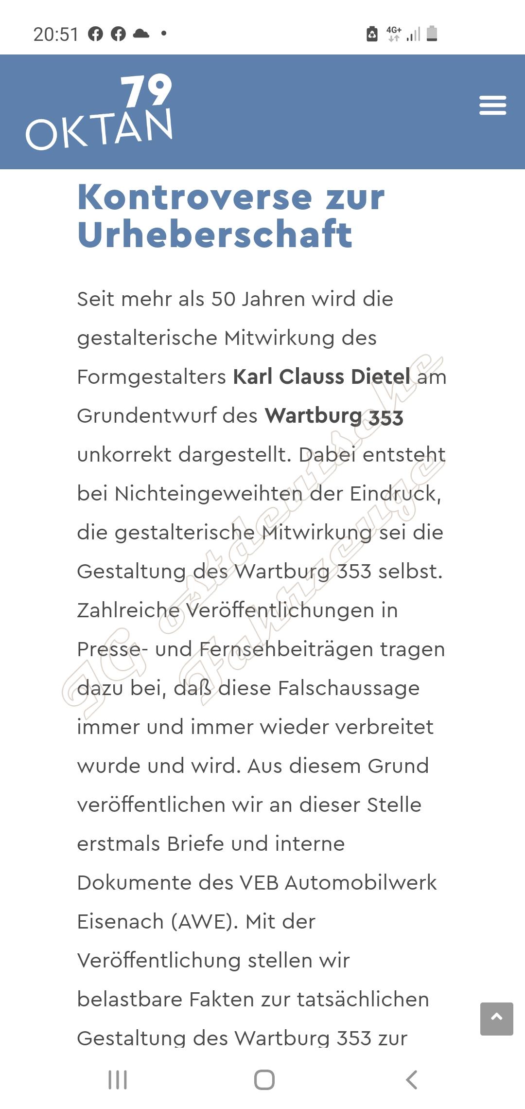 Die 79Oktan positioniert sich unter www.79Oktan.de/wartburg353 so wie unten zu sehen und behauptet, dass die Grundentwürfe Dietels nicht ausgewählt wurden.