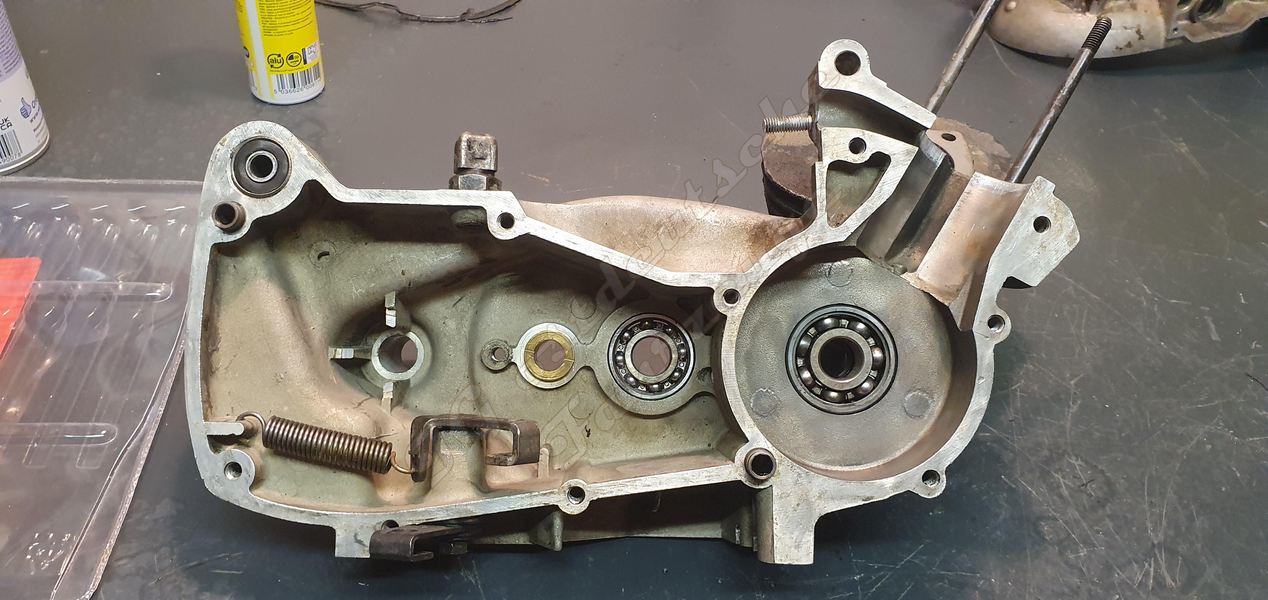 Heute habe ich dann mal etwas weiter gefummelt. Diesmal mit sehr empfehlenswertem Werkzeug zum trennen der Gehäusehälften und zum ausdrücken der Kurbelwelle.