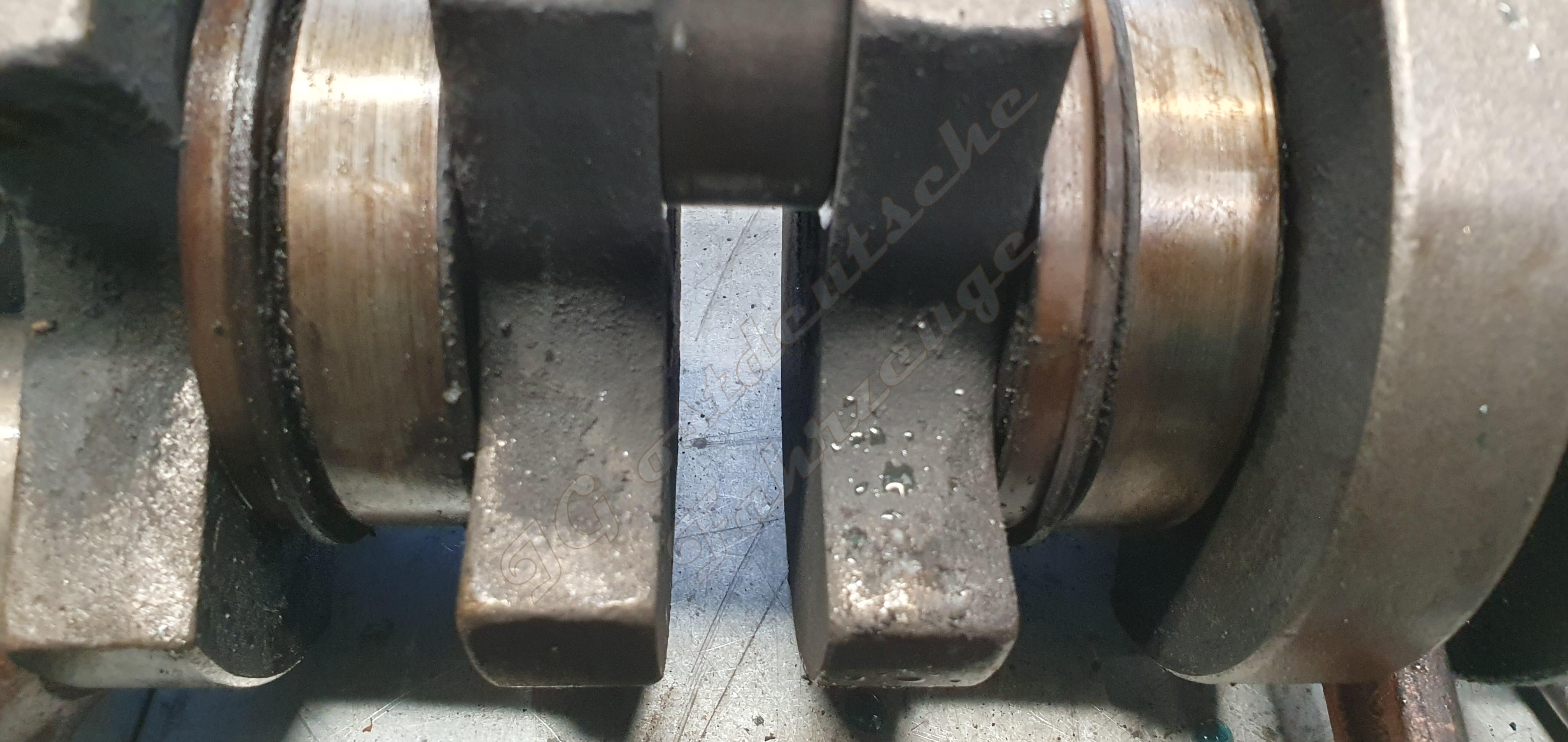 Er lässt sich demontieren. Es liegt kein Schmiermittelmangel vor, es ist sehr wahrscheinlich, dass sich Ölkohle gelöst hat und danach der Pleulfuss Schaden nahm. Es war viel Kohle vorhanden, trotz 20.000km mit 1:100. Sie befand sich Hauptsächlich in den Hauptlagern und den Dichtungsdeckeln der Kolbenringabdichtungen.