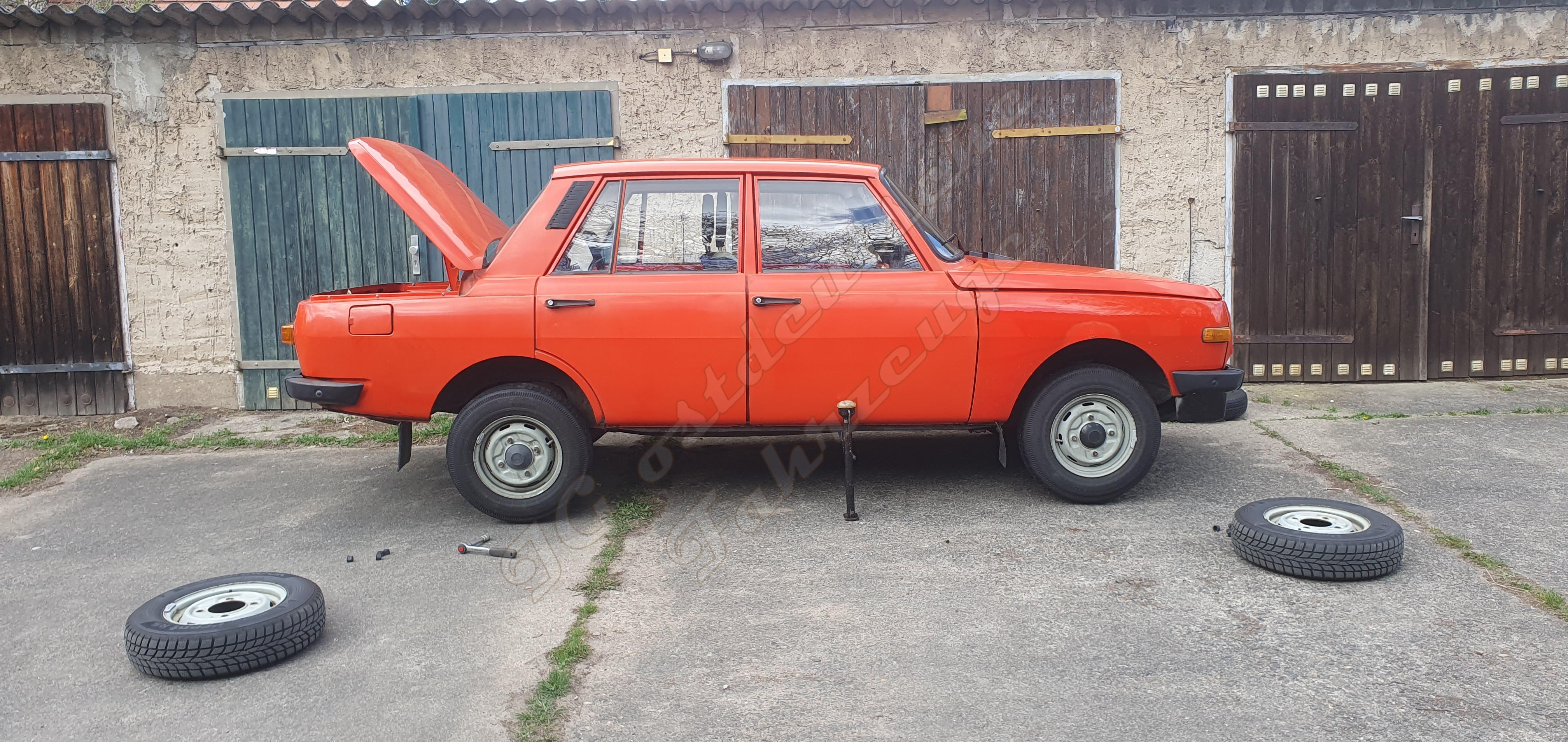 Die Heidenau-Diagonalreifen auf dem Wartburg verhalten sich in einigen Situationen bemerkenswert und deutlich auffälliger als die Radialreifen.