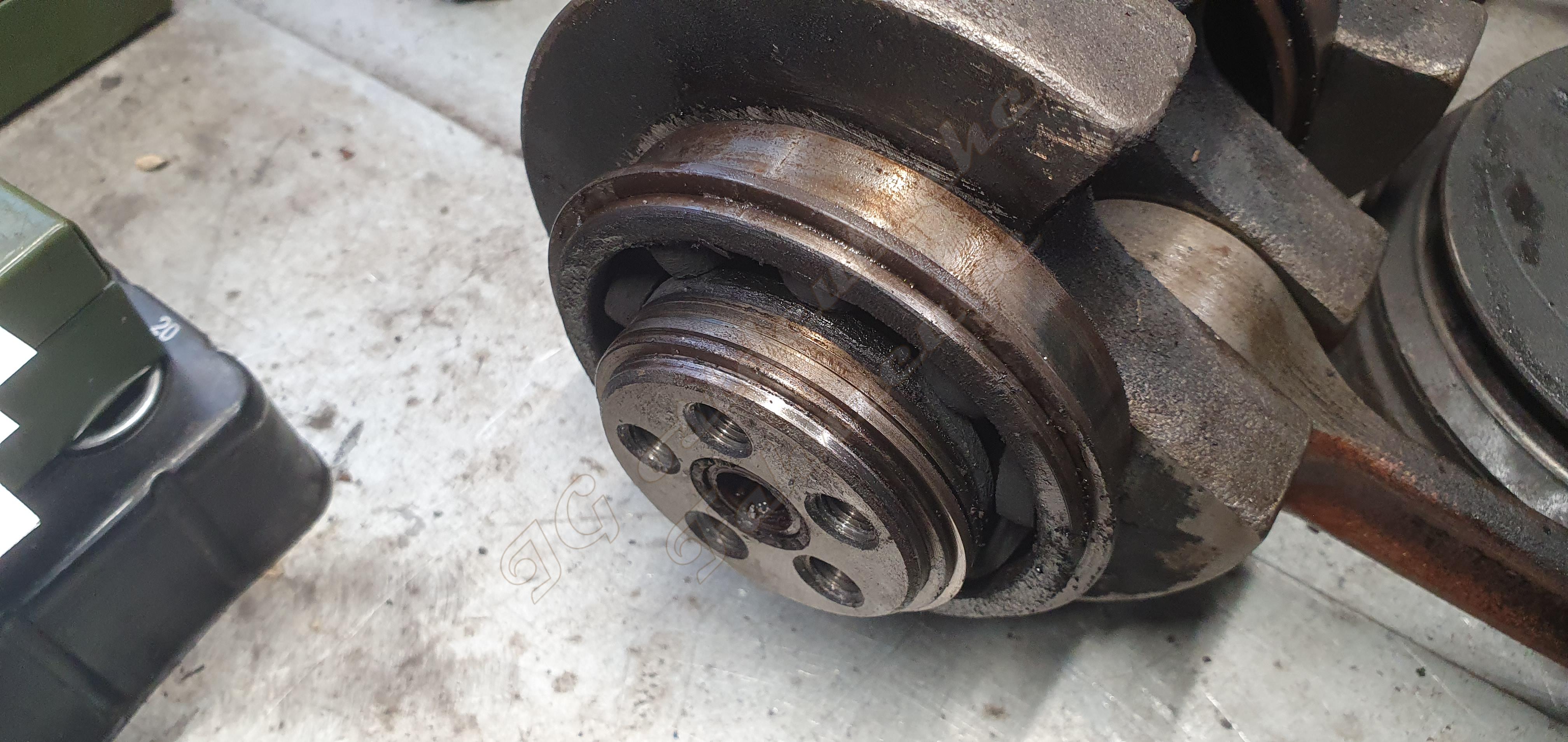 Er lässt sich demontieren. Es liegt kein Schmiermittelmangel vor, es ist sehr wahrscheinlich, dass sich Ölkohle gelöst hat und danach der Pleulfuss Schaden nahm. Es war viel Kohle vorhanden, trotz 20.000km mit 1:100. Sie befand sich Hauptsächlich in den Hauptlagern und den Dichtungsdeckeln der Kolbenringabdichtungen.