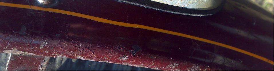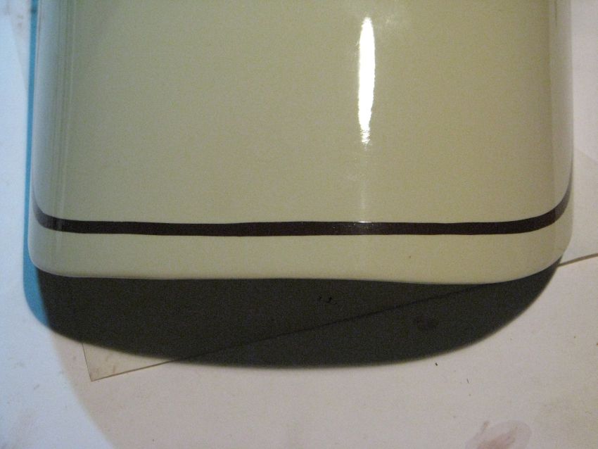 Hier noch mal für alle die, die die Linierung gern vermessen und sich bestens mit Strichstärken auskennen: Eine original-Linie am SR1-Schutzblech hinten. Oben ist sie im Übrigen erheblich dünner, als an dieser Stelle am Rücklicht...