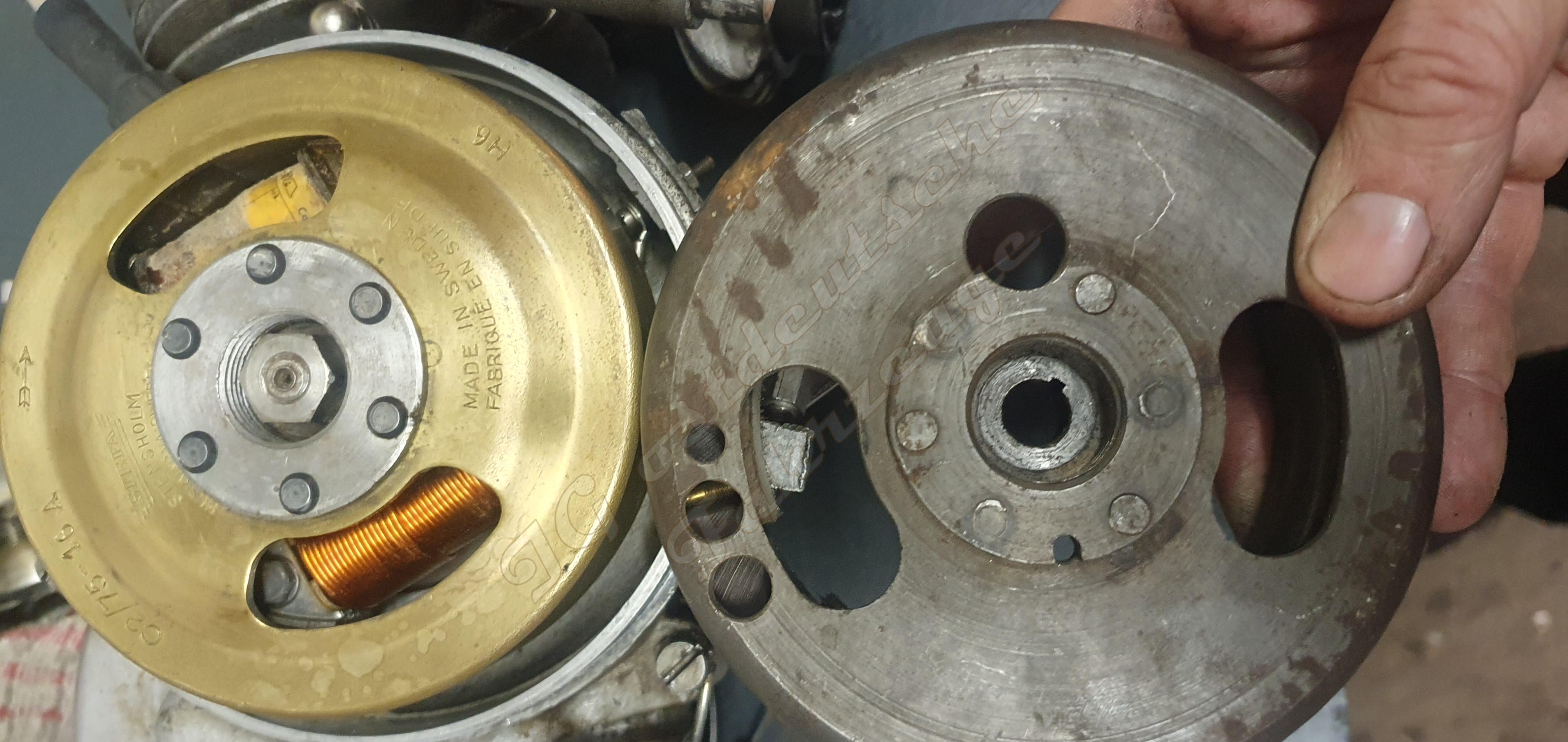 Interessant finde ich, dass dieser Motor noch die Halterung am Gehäuse aufweist, wie ihn frühe MAW hatten, mein Motor von 1954, diesen Anguss aber nicht mehr hat, wie spätere MAW.
