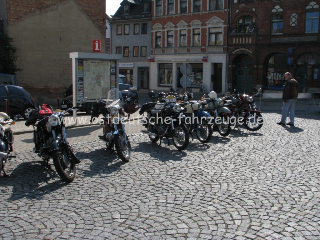 Ja, das Schloßtreffen in Apolda war wirklich immer sehr schön. Leider wurden mit den Jahren die Strecken immer länger und die Reisegeschwindigkeit auch, so daß nun kaum bis keine 50ccm mehr dran teilnehmen. Vor vier Jahren waren wir zu viert (!) in der Schnapsglasklasse bei über 300 Teilnehmern. Das war ein arges Gehetze, um von Station zu Staion zu kommen.